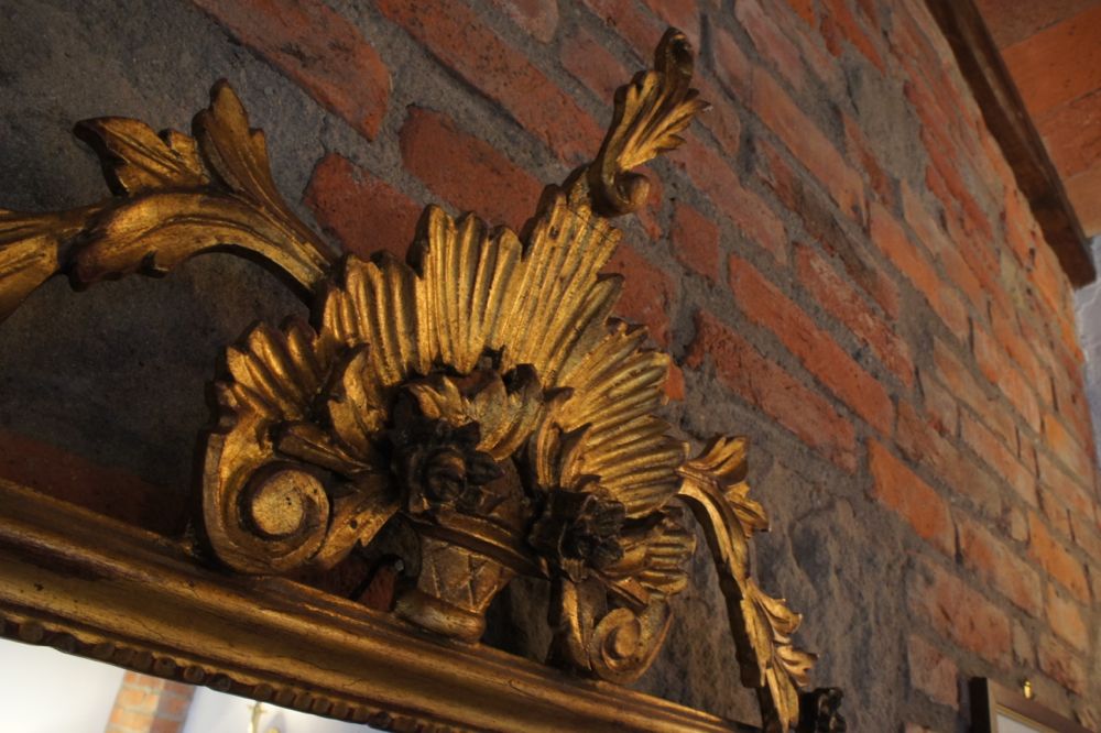 Soggiorno con angolo cottura e camino. Bagno con cabina doccia.